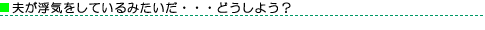 本当に困りますね。まずは、夫が本当に浮気をしているか否か、事実の調査をする必要があります。興信所に頼むとか方法はいろいろありますが、直接夫と事実確認の話し合いをするべきでしょう。